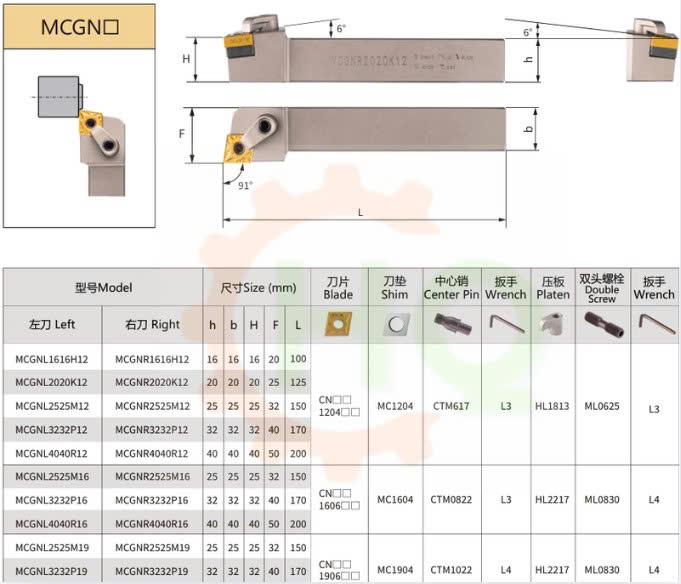 _Cán dao tiện MCGN gồm có cán trái MCGNL và cán phải MCGNR phù hợp với yêu cầu gia công.