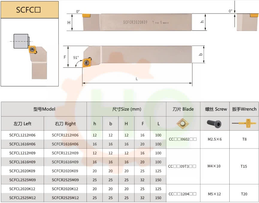 Cán dao tiện ngoài, mặt đầu 91 độ SCFC