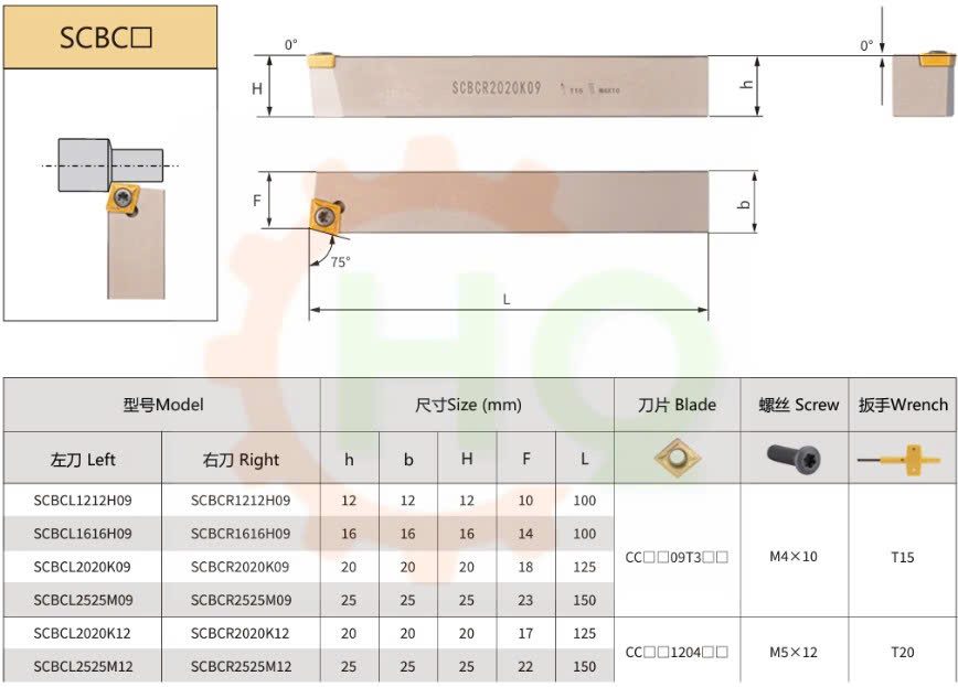 _ Cán dao tiện ngoài SCBC của HQ là dụng cụ cắt gọt kim loại được sử dụng phổ biến trong gia công cơ khí. Loại cán dao này có góc tiếp xúc mũi dao 75 độ dùng cho tiện ngoài.