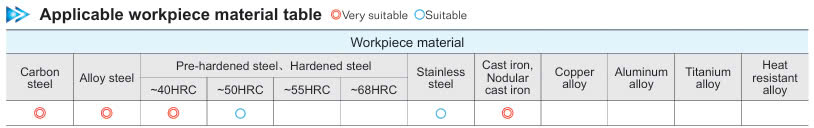 _ Ứng dụng: Phù hợp cho gia công cắt gọt kim loại trên các vật liệu như thép, thép không gỉ, gang, thép sau nhiệt luyện…