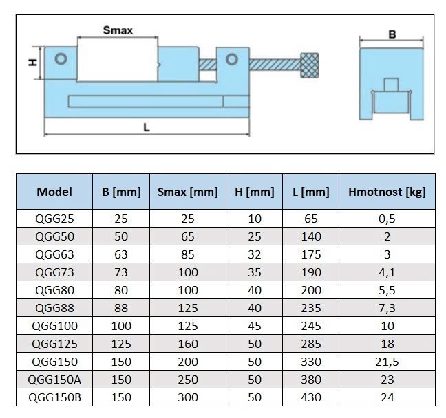 _ Với thiết kế nhỏ gọn, thân ê tô được chế tạo từ thép hợp kim chất lượng cao và được tôi cứng toàn bộ, QGG đảm bảo độ bền, độ vuông góc và song song cực tốt.