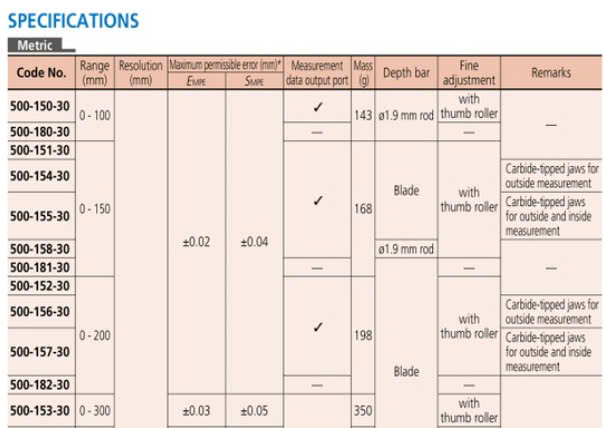 Thông số thước cặp điện tử Mitutoyo 500-153-30