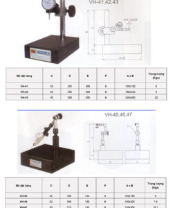 Các mã sản phẩm trên là chưa bao gồm đồng hồ so. Các mã sản phẩm VH-41, VH-42, VH-43 lắp phù hợp với đồng hồ so mã VDI-1; Các mã sản phẩm VH-45, VH-46, VH-47 lắp phù hợp với đồng hồ so VDI-0.8A.