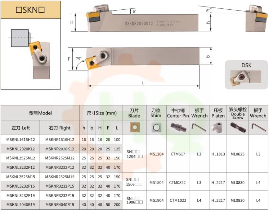 _Cán dao tiện MSKN gồm có cán trái MSKNL và cán phải MSKNR phù hợp với yêu cầu gia công.
