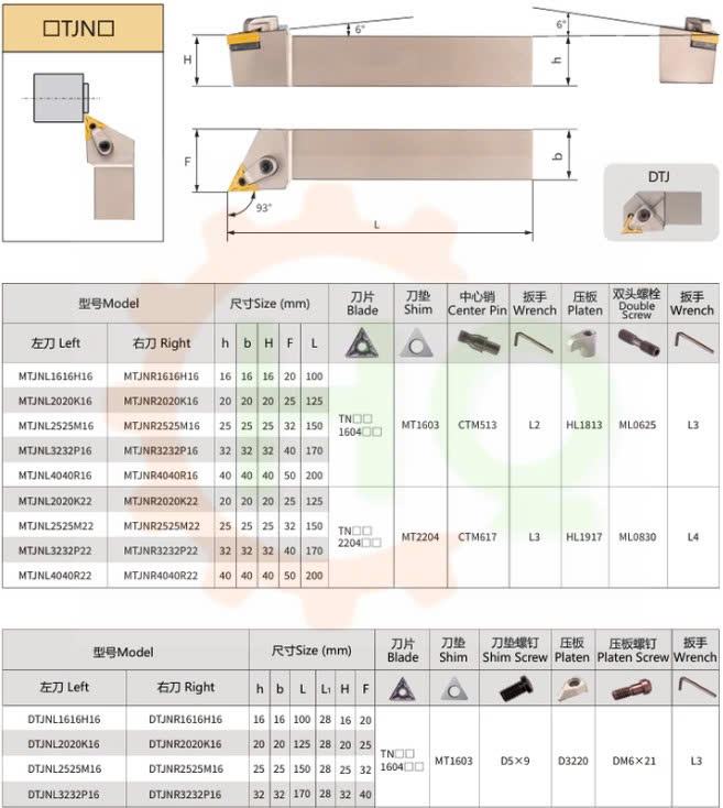 _ Cán dao tiện mặt đầu MTJN, DTJN của HQ là dụng cụ cắt gọt kim loại được sử dụng phổ biến trong gia công cơ khí. Loại cán dao này có góc tiếp xúc mũi dao 93 độ dùng cho tiện ngoài, mặt đầu.
