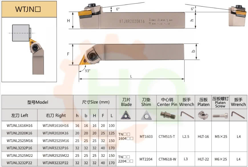 _Cán dao tiện WTJN gồm có cán trái WTJNL và cán phải WTJNR phù hợp với yêu cầu gia công.