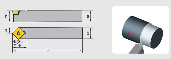 _ Có góc tiếp xúc mũi dao 45 độ thích hợp tiện ngoài.
