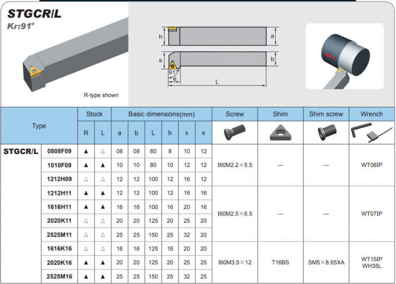 _Cán dao tiện STGCR/L gồm có cán trái STGCL và cán phải STGCR phù hợp với yêu cầu gia công.