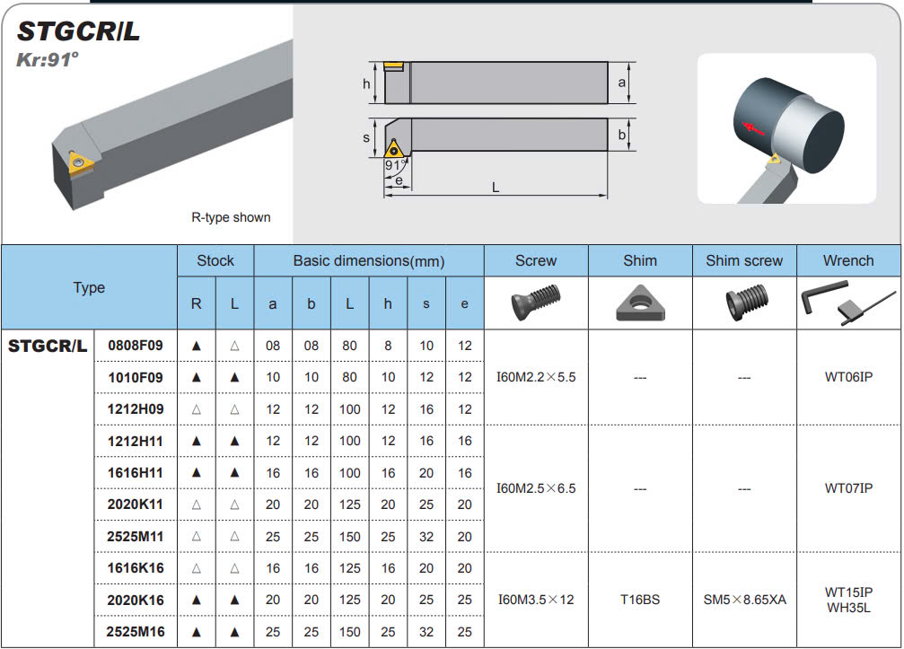 _ Cán dao tiện ngoài STGCR/L của hãng ZCCCT là dụng cụ cắt gọt kim loại được sử dụng phổ biến trong gia công cơ khí. Loại cán dao này có góc tiếp xúc mũi dao 91 độ dùng cho tiện ngoài.
