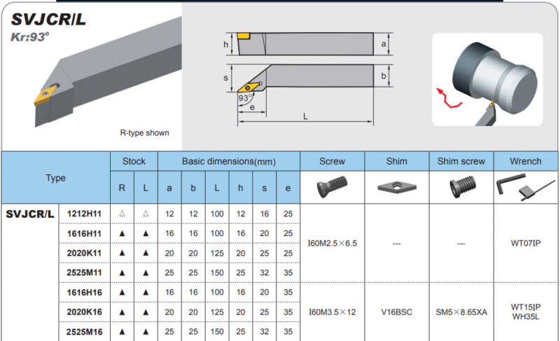 _Cán dao tiện SVJCR/L gồm có cán trái SVJCL và cán phải SVJCR phù hợp với yêu cầu gia công.