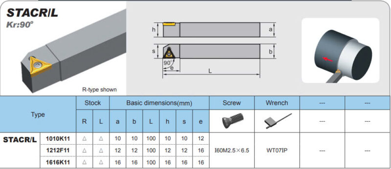 _Cán dao tiện STACR/L gồm có cán trái STACL và cán phải STACR phù hợp với yêu cầu gia công.
