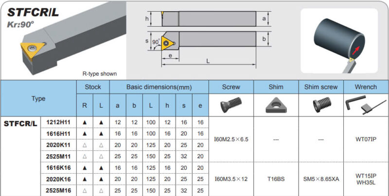 _Cán dao tiện STFCR/L gồm có cán trái STFCL và cán phải STFCR phù hợp với yêu cầu gia công.