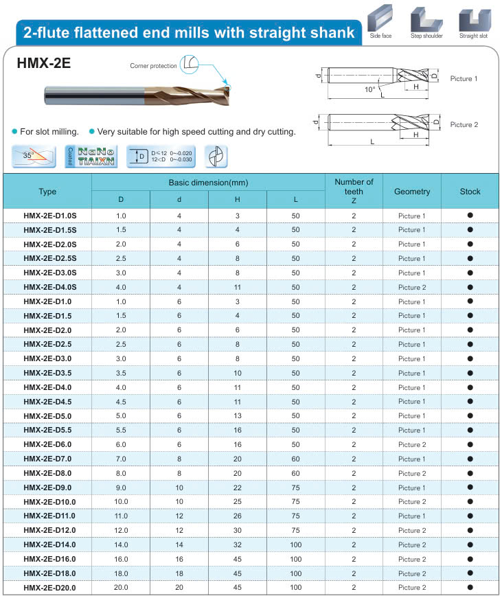 Thông số kỹ thuật của dao phay ngón HMX-2E