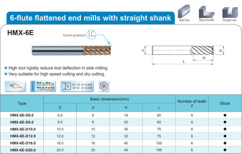 Thông số kỹ thuật của dao phay ngón HMX-6E