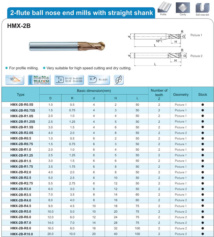 Dao phay cầu 2 me cho thép ~68HRC mã HMX-2B hãng ZCCCT