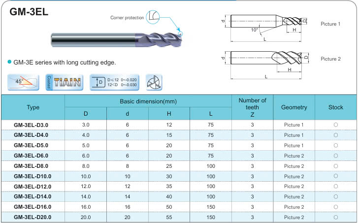 Thông số kỹ thuật của dao phay ngón GM-3EL