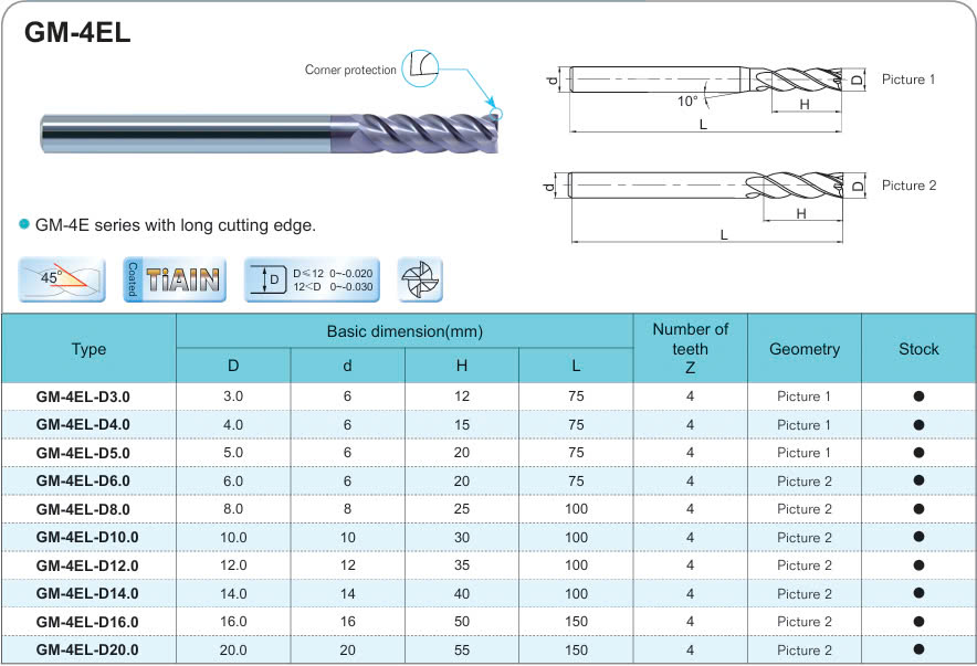 Thông số kỹ thuật của dao phay ngón GM-4EL