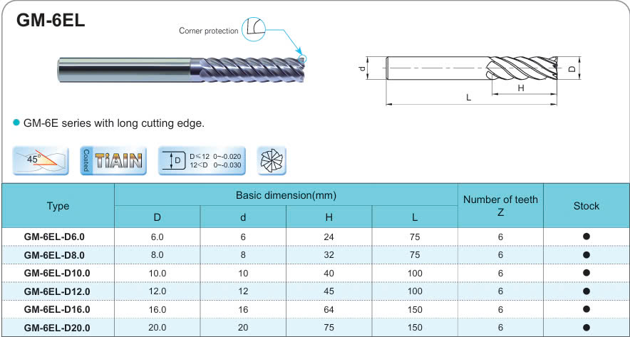 Thông số kỹ thuật của dao phay ngón GM-6EL