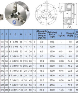 THÔNG SỐ SẢN PHẨM MÂM CẶP 3 CHẤU MÁY TIỆN VSC-3, VSC-4, VSC-5, VSC-6, VSC-7, VSC-8, VSC-9, VSC-10, VSC-12, VSC-14, VSC-16 CỦA VERTEX: