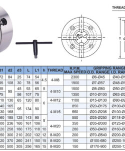 – Khoảng kẹp đường kính ngoài “O.D RANGE” và khoảng kẹp đường kính lỗ “I.D RANGE” tham khảo trên bảng thông số của mâm cặp.