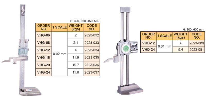 • Kích thước chiều cao tối đa đo được: 300; 450; 500; 600mm.